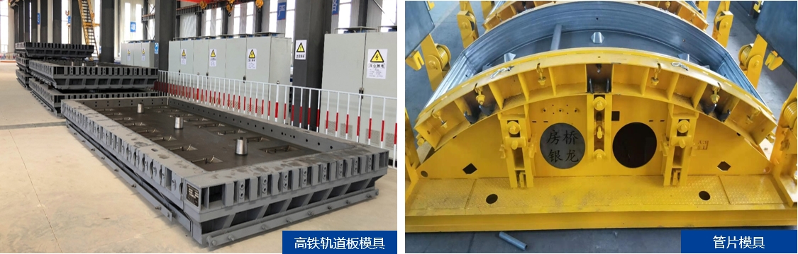 精密鋼膜是保證高鐵軌道板、軌枕、隧道管片、風(fēng)電混塔塔片、裝配式建筑構(gòu)件等混凝土預(yù)制件各部位尺寸和形位精度的關(guān)鍵裝備。銀龍組建集研發(fā)設(shè)計、生產(chǎn)制造和安裝服務(wù)為一體的技術(shù)團(tuán)隊,建設(shè)大型機(jī)加工車間、組焊車間、組裝車間,配置數(shù)控激光切割機(jī)、數(shù)控車床、數(shù)控加工中心等數(shù)十套高精裝備,用于生產(chǎn)軌道板、軌枕、管片等精密模具,加工精度可達(dá)0.01mm,已向國內(nèi)外多家預(yù)制構(gòu)件廠提供了數(shù)千套高精模具。